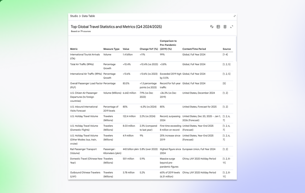 Hôm nay, Google đơn giản hóa điều đó với Bảng dữ liệu. NotebookLM giờ đây tổng hợp các nguồn dữ liệu thành các bảng có cấu trúc, sạch sẽ, sẵn sàng để xuất sang Google Sheets.