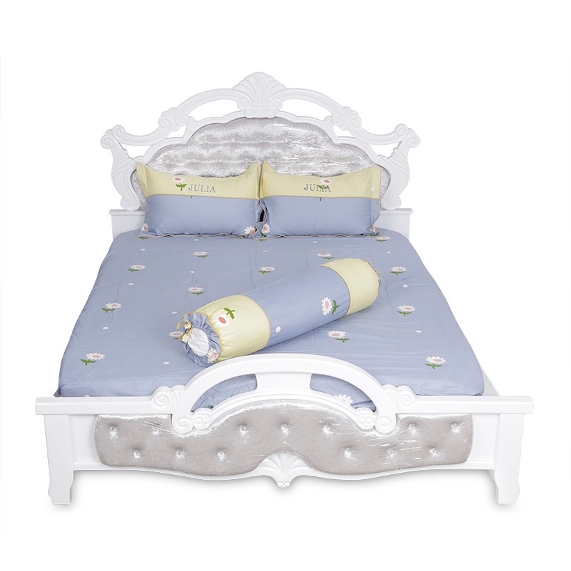 - Bộ chăn drap gối cotton thêu Hàn Quốc Julia 556BC18 (Xanh lá non) gồm: 1 drap bọc thun 180 x 200 x 28 cm, 1 chăn chần gòn 200 x 220 cm, 2 áo gối nằm 50 x 70 cm, 1 áo gối ôm 37 x 105 cm, góp phần chăm sóc cho giấc ngủ của gia đình bạn một cách trọn vẹn nhất.